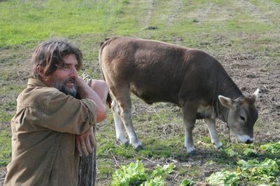 Eddie was the one person whose picture I asked to take for this blog and he consented, so here you go: a British druid (and the farm’s cow, who we had just fed the bitter lettuce to and was loving it).