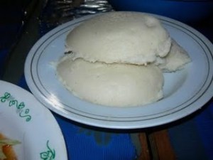We spent the night in an enclosed campsite, having a barbeque (which is an integral part of South African life, called a “braai”) trying the African staple of corn meal mixed with water into a thick paste. It is called pap (pronounced “pop”) in South Africa, nshima in Zambia, and ugali in Tanzania. And since I wanted to double-check the ingredients, wikipedia informs us that it is also called sadza in Zimbabwe and fufu in West Africa. It is sort of like a bland and thick mashed potatoes or porridge, and is properly eaten with one’s hands, grabbing up a little handful then pressing it or rolling it into a roughly golf ball sized lump, which you then sweep through a basic tomato and onion sauce if you have it. These are lumps of nshima.