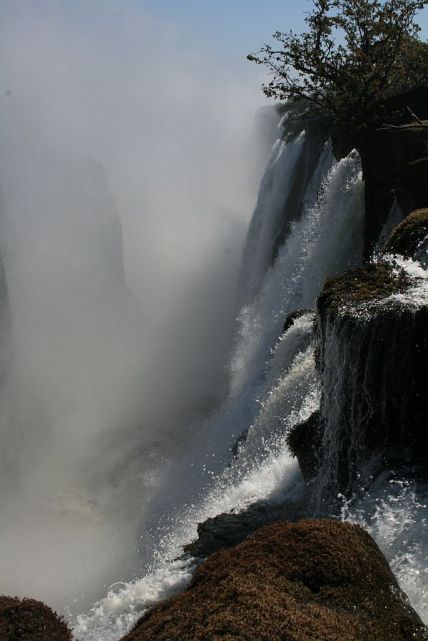 It is the largest waterfall on Earth, a mile long, 360 feet tall. It was incredible. If the falls don’t take your breath away, the cold mist that rains down on you will. It is chilly rain under the clear, hot African sun, kind of a trip, no?