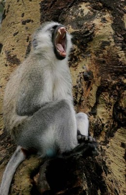 Seriously! The little one was pissed that I had no food, and got aggressive. Then the adults, including the (suddenly much larger looking) alpha male picked up the mood and things got freaky, fast.