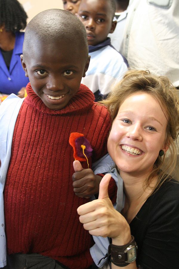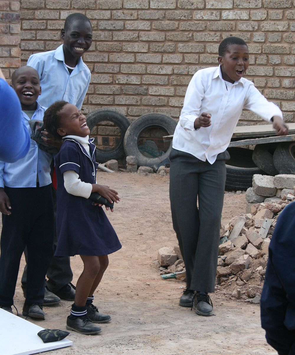In South Africa it was laughter, dancing, clowning around, and occasional shyness, such as when they presented the Thank You cards they had made for Katrien and myself.