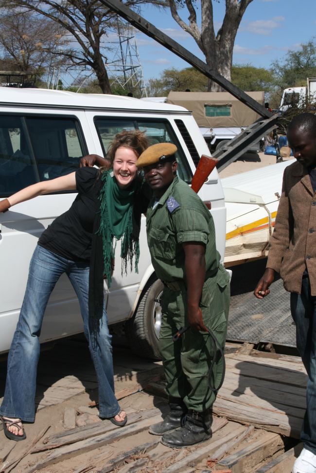 Crossing from South Africa to Botswana involved a moderate amount of bureaucracy, a couple forms, a couple stamps. The best part was when a guard peered in the window and saw the copy of Obama’s The Audacity of Hope that I was reading and came around to talk to me about it. Despite his not speaking English, we got by on a few words, several smiles, and a big thumbs up. (We would continue to see Obama bags, posters, and shirts throughout Africa…it is a better time to be an American.) As we were leaving, another guard looked at our friend Lisa’s shirt, which had kind of a sherbet-colored swirl of reds and oranges and said in a soft, deep voice “I like your shirt, I want to eat it.” We laughed and smiled politely and drove on up the road.