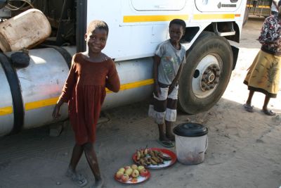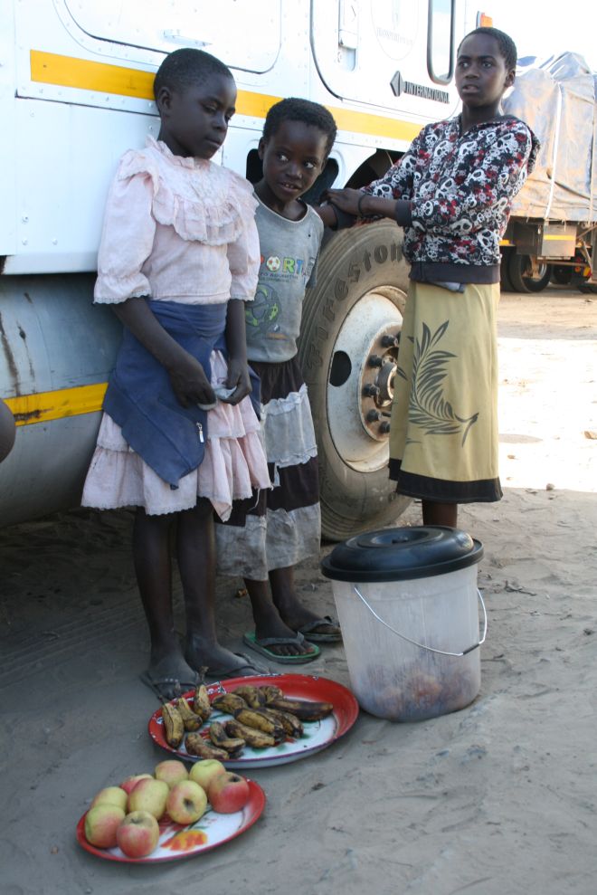 I gave them some of our carrots. We smiled some more. A prostitute walked over and climbed into the cab of the truck. We all just kept standing there and smiling at each other while the stagnant stream of activity seeped along. It was bizarre and heart-breaking.