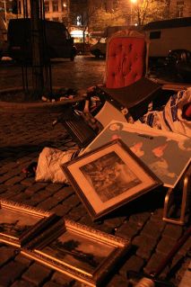 Three hours later I was tired and the sun finally lightened the sky in the brief gap of time between one pile of clutter and the next, and Katrien had bought a retro, red, two levelled table-thingy that we are now deciding whether to put next to the sofa or the fridge. As a frequent partaker of hot cups of tea, I favour the sofa.