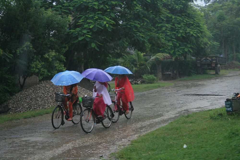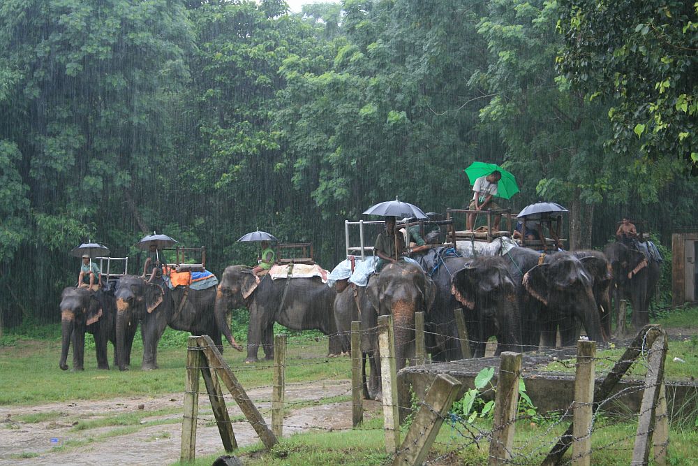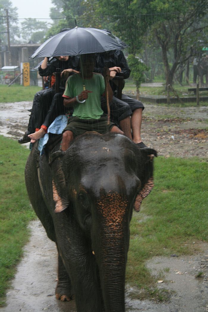 Chitwan gets something like 2,500 mm of rain during the monsoon season, which, for us non-metric people is equivalent to 1.3 shitloads of precipitation. The humidity when the sun comes out turns it into the interior of a rice cooker. You strip off your rain jacket and swelter, then when a nice fresh breath of air comes you enjoy it then put your raincoat back on because the rain follows that wind by about 30 seconds, and feels pretty darn good.