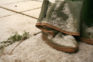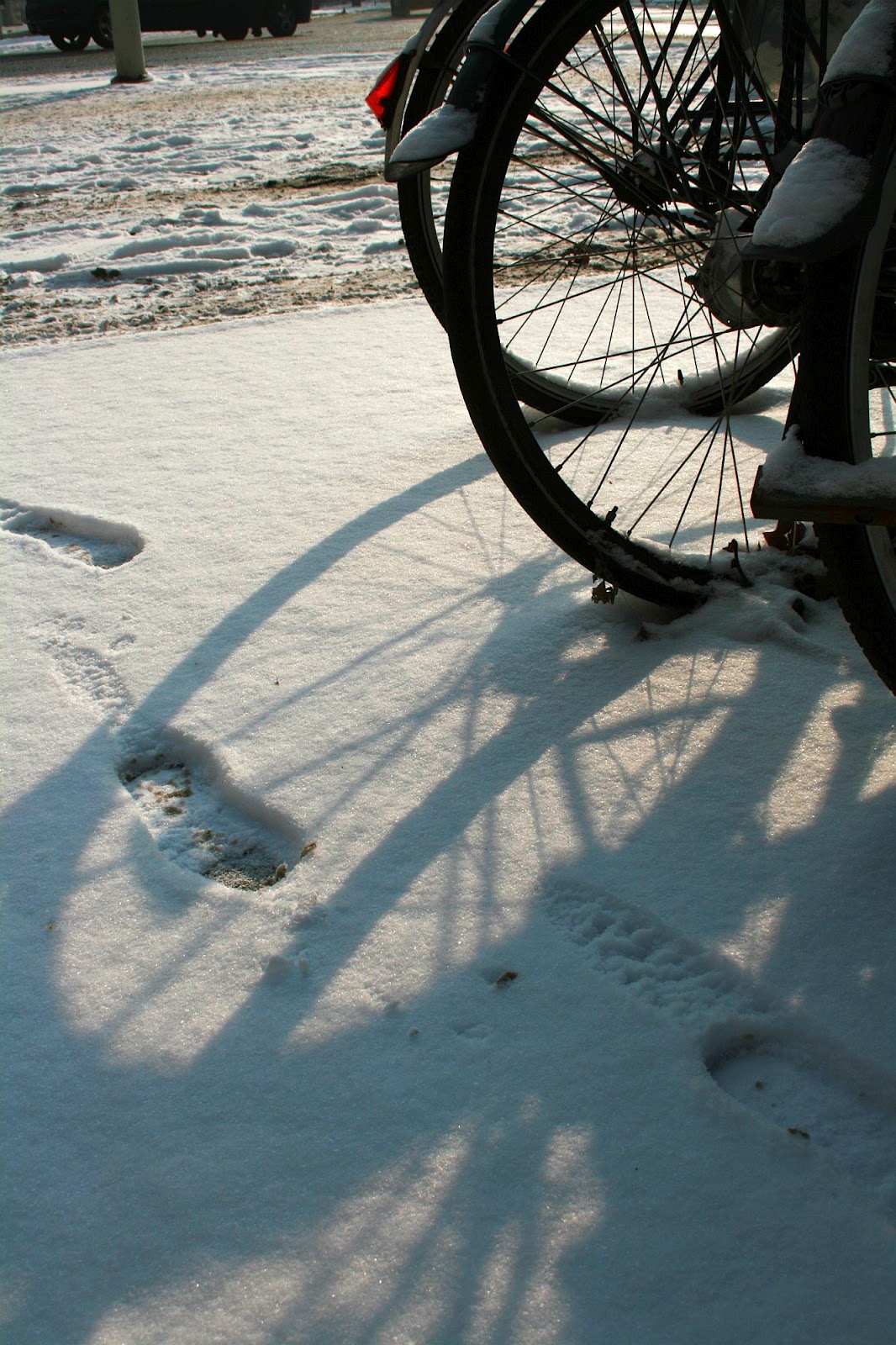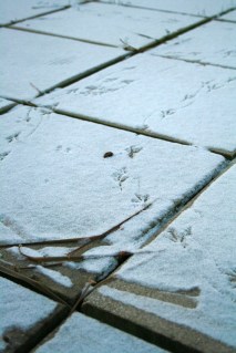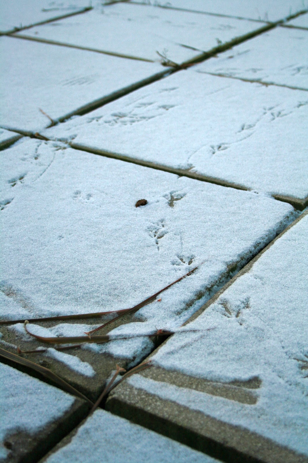 The cocosnolt fell on Monday morning. It was the day of a nationwide strike, and I can picture all those buses sitting untouched in the yard somewhere, sprinkled in cocosnolt. It lingered in the shadows and outside the pathways all week since the temperature never got above freezing. No thawing here.The birds were not on strike, and the food we put out during the winter makes our balcony popular with the avian population.
