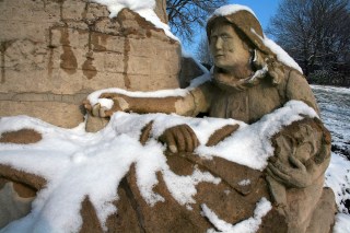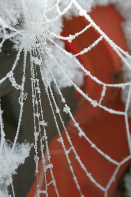 The crystals are sticky, and outline everything, each twig on a naked tree, each spoke of a parked bicycle, and the cold figures of the War Memorial in our town.