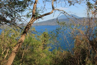 I start down the hill, and quickly glimpse blue between the branches. I am heading to Laguna de Apoyo, a freshwater lake in an expired volcano. It’s even more beautiful than it sounds. A few hours, a swim, and a good meal later, I am sitting here listening to the small lake waves on the rocky shore, nighttime crickets, and one of the cute older gay gentlemen playing his mandolin in a hammock. The bats come and go from their nests in the eaves over my head and there is a good stiff breeze, so I won’t have to slather my delicious ankles with mosquito repellent tonight.