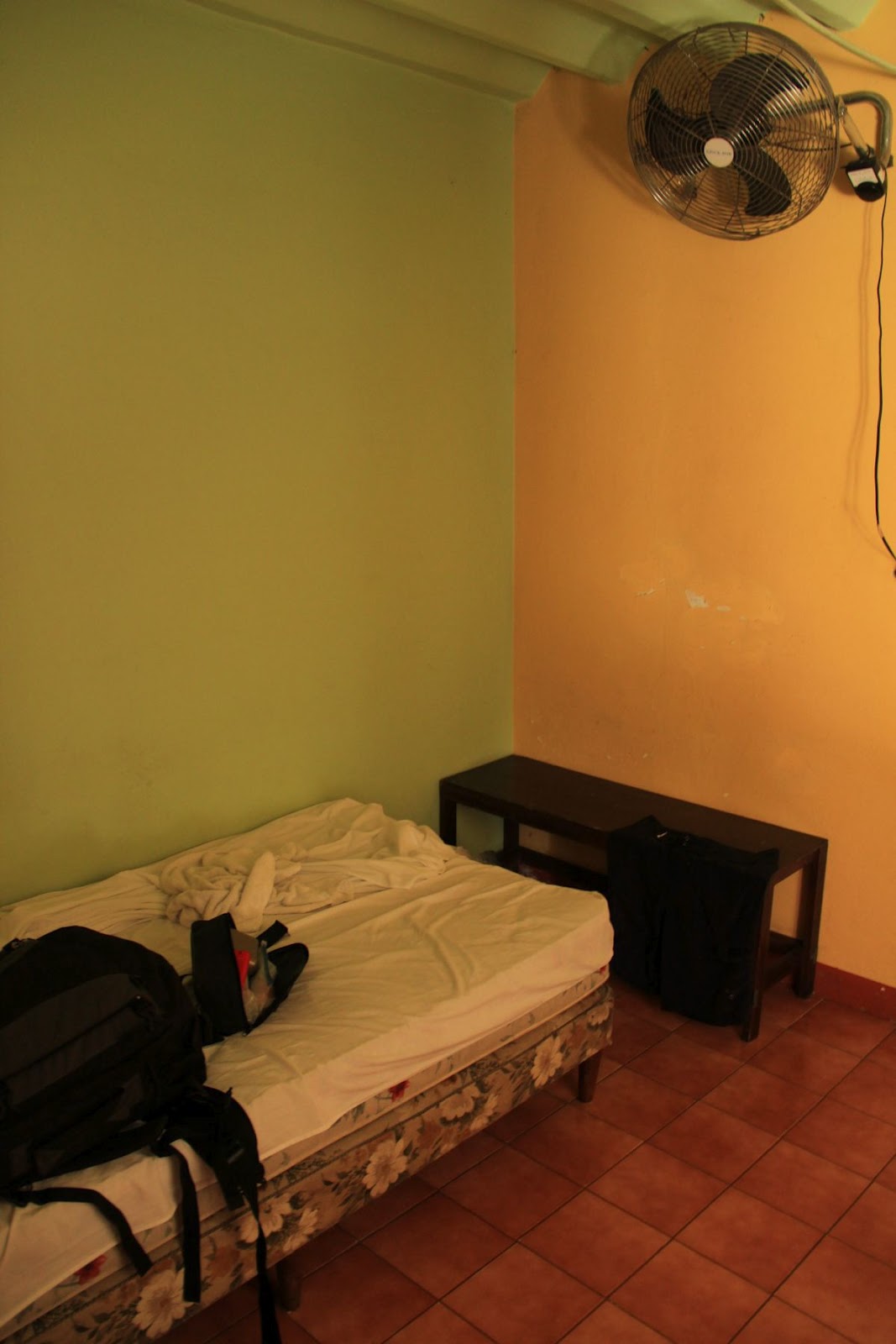 It was above budget, but with the dark and rain outside, I decided to splurge. Private bathroom! A delight, even without a toilet seat. Wall-mounted fan! Which sounded quite literally like a propeller plane, even on its lowest setting. I dreamed all night of the Red Baron and strafing trenches in 1916.