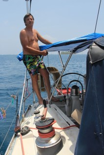This notwithstanding the impressively casual attitudes of the crew. I had an English student in Belgium who was taking a sailing class, and used to explain to me what he was learning as practice. Charting a course on precise maps, compensating for current and wind, calibrating the compass to adjust for the variance between geographic and magnetic north, calculating depth from tidal charts, and navigating via reference points and harbor stats. None of that on the Andiamo.