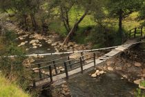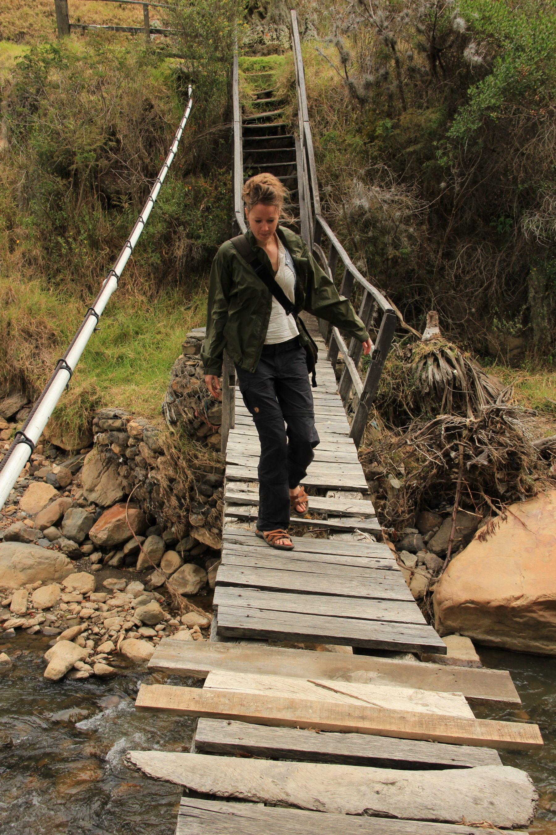 We found the bridge, which was indeed missing the guard rails and several planks, though some had been replaced by rough-sawn chunks of wood. What was left was hardly confidence inspiring but we made it across without any broken limbs or action movie moments.