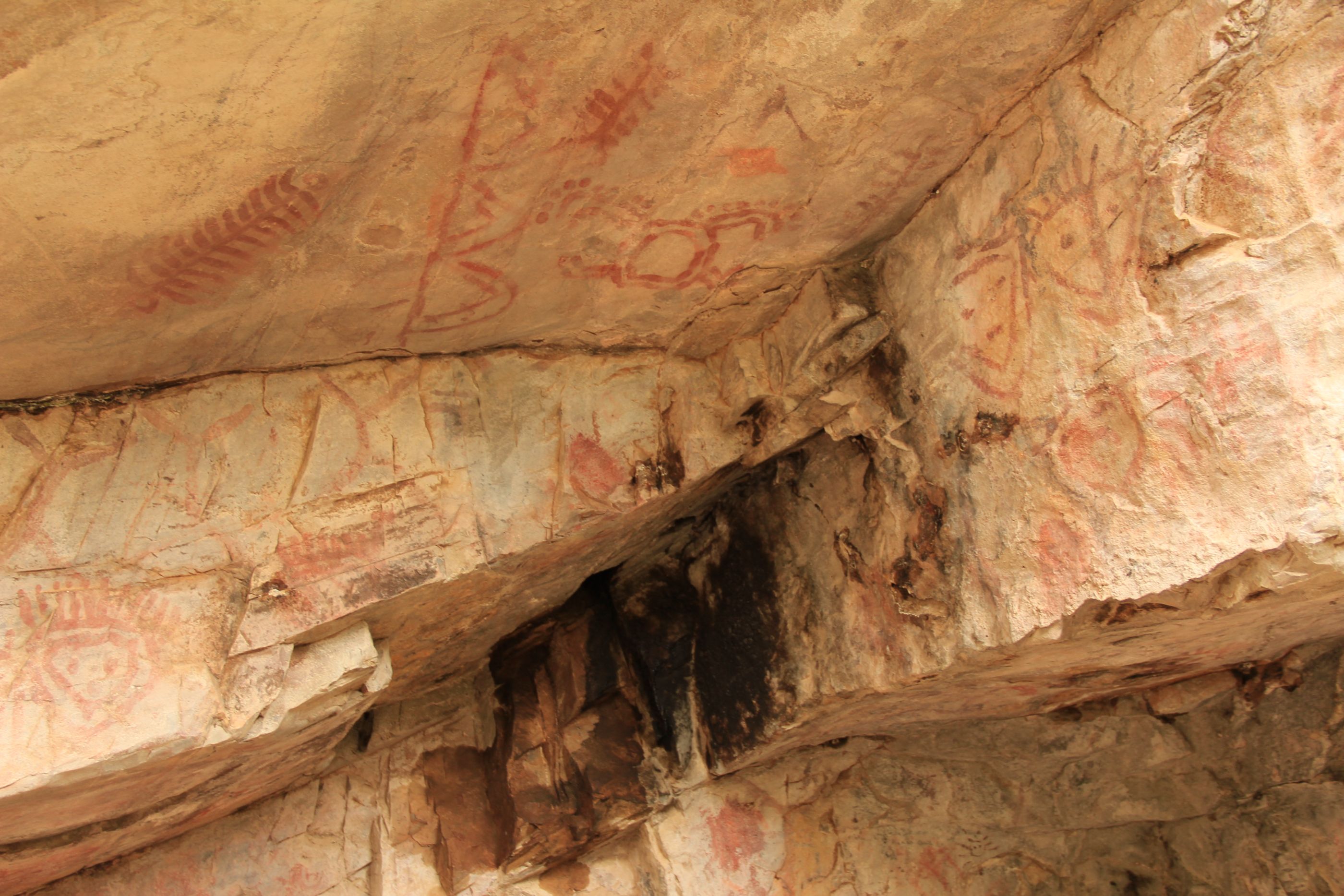 Yeah, they’re all in that red color that doesn’t show up super well on the rock. Did you click on the picture to blow it up though? There were several heads with stylin’ dot ‘fros, as well as some gecko-looking critters, geometric designs, and other human figures.