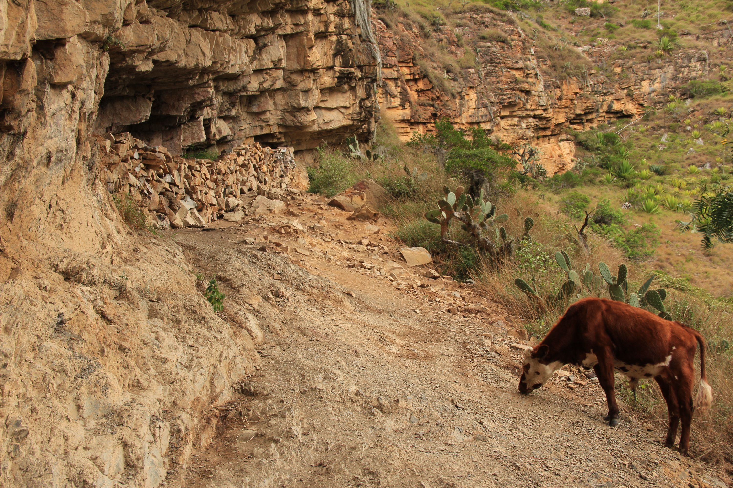On the other side the path continued through lush green grass between the sere cactus hills. What looked like cows were grazing along the path, but we couldn’t help but notice their rather impressive balls hanging down. Hello…oxen? Surely no one leaves their bulls out to wander around? Sometimes I realize what a city boy I really am, despite my best intentions.