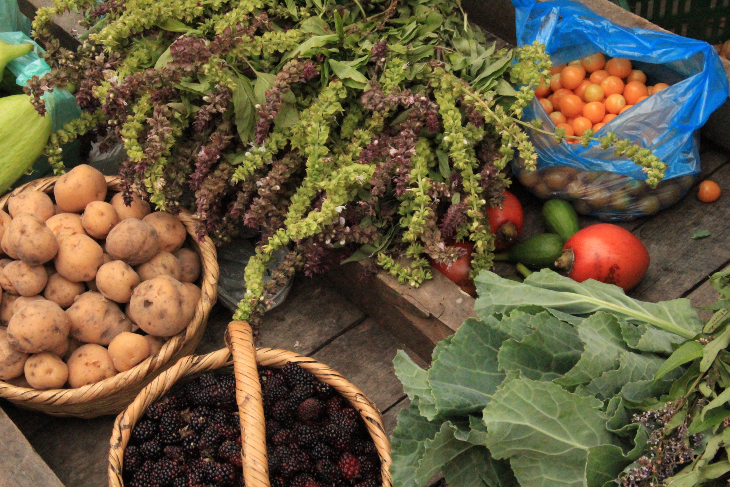 There were green beans, eggplant, beets, and gorgeous piles of avocadoes. A dozen types of potatoes from familiar brown to tiny red fingerlings, garlic, corn on the cob and loose by the grain, as well as bunches of unknown herbs and leafy greens.