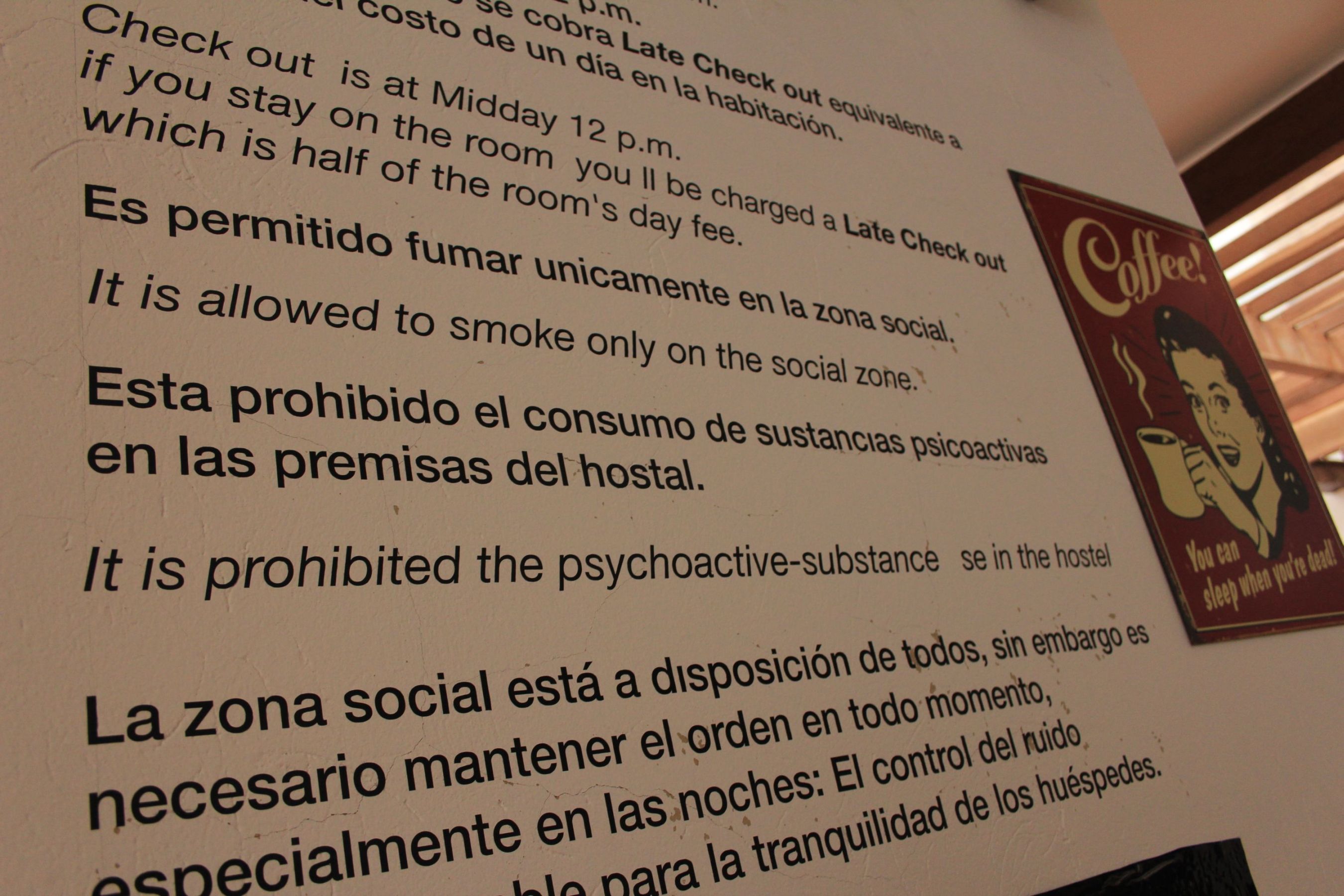 I suspect Sue has a deal with a local Spanish school, as there seemed to be a lot of studying going on during the day, and studying-abroad-type partying at night. The staff barbecued rows of juicy sausages and grilled plantains by the tray, which we peeked at enviously over our bowls of fairly bland spaghetti, not knowing how to get included in the flavor options.