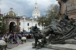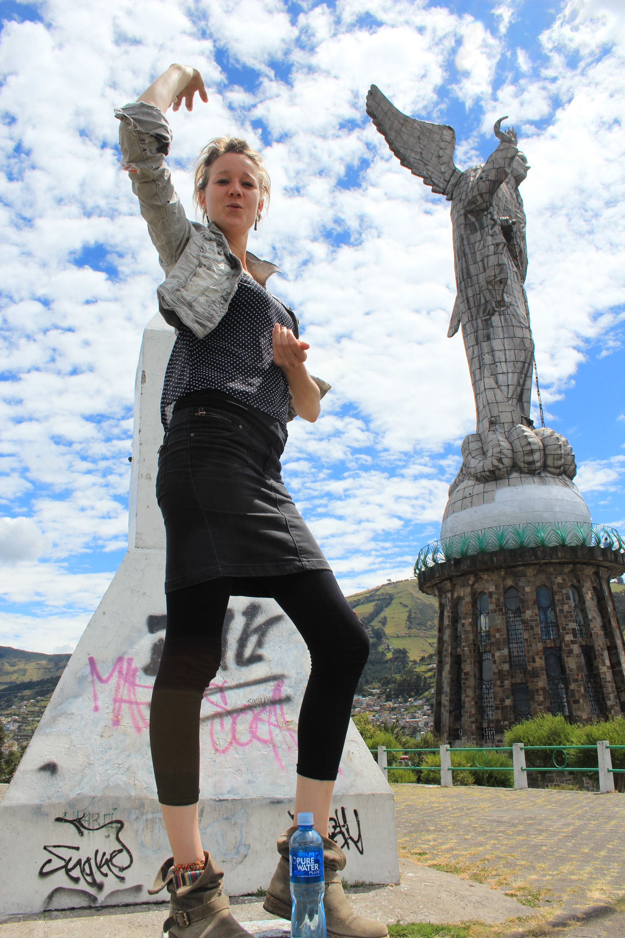 El Panecillo (the little loaf of bread) is a hill just southwest of the old town, crowned by a 40 meter high statue of The Virgin of Quito, who has a more mythological flair than usual, given her wings, and the fact that she seems to be dancing on the dragon chained at her feet. (They say she’s actually getting ready to fly away, but her nickname is “La Bailarina” so I’m not the only one who sees divine boogying.)