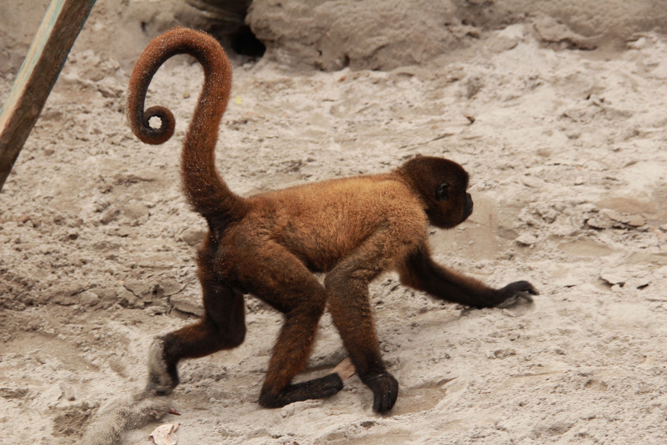 Nacho’s incredibly dexterous tail and hangs seem to automatically reach up and grip things, and he ended up hanging from the blowgun several times, until our boat driver mentioned that he might break it.