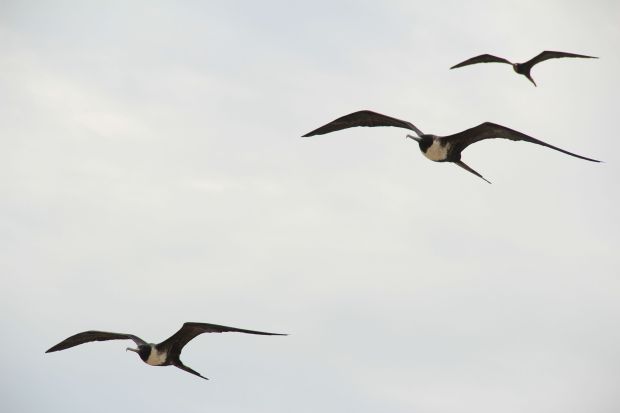 Frigate birds in San Pablo, one of four pictures I took in town. (The other three are blurry pictures of frigates.)