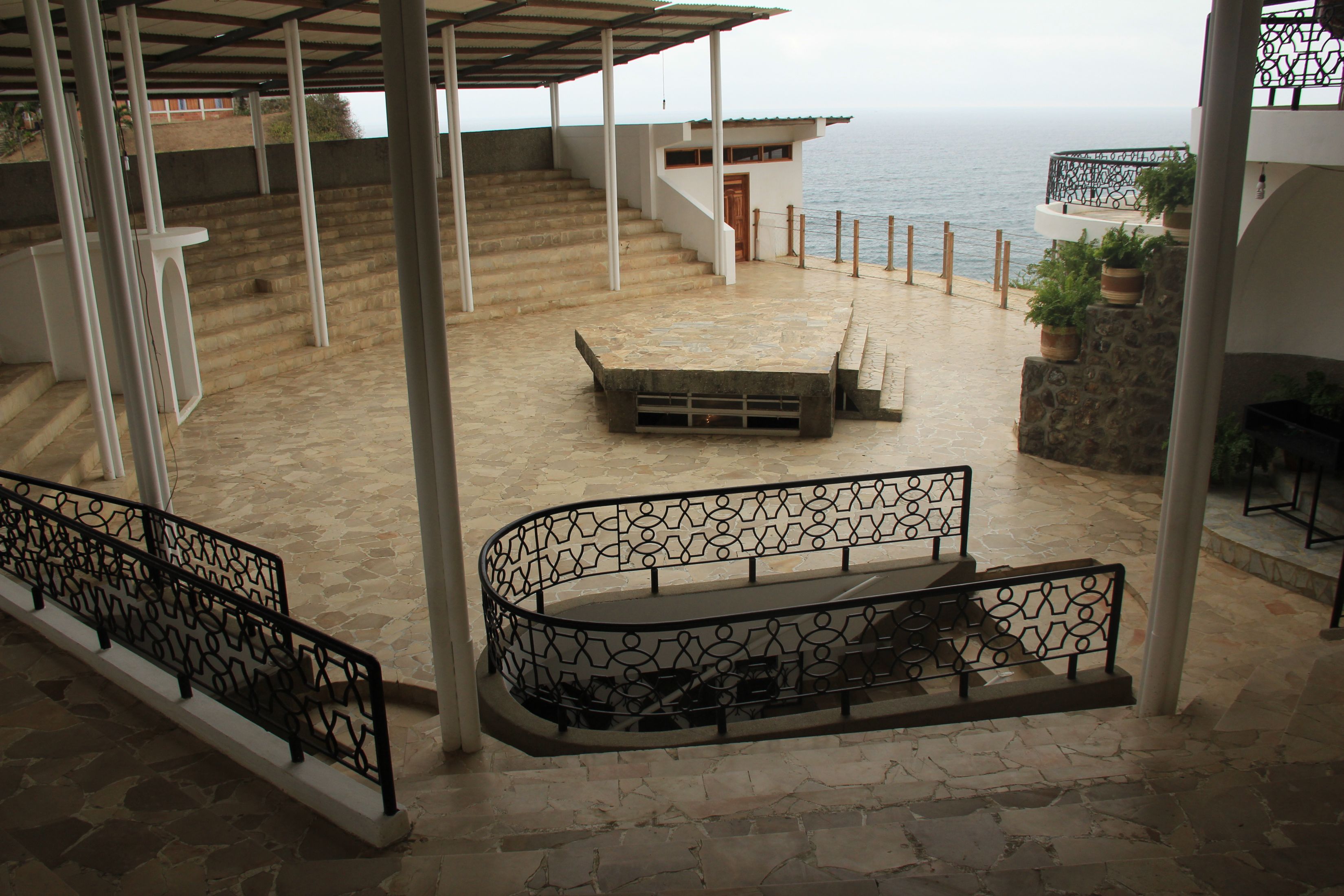 We started on the sand, assuming there’d be a path from the beach up to the Sanctuary, but as we got close it seemed the wealthy have bought up every foot of beachfront property, and there was no gap between their mansions. Luckily actually building the mansion seems to be the hard part, so we crossed a barbed-wire fence and cut through one of the half-built ego-cases. (Meanwhile the town next door doesn’t have a hospital, garbage rots on the streets and beaches, and the school was as cinder-block bare as I expected.)
