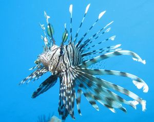 With their elaborate feathery spines they are too fabulous to be anything but the drag queens of the sea, but strong currents give them bad hair days to a comic and pity-inspiring extent as their venemous spines swing wildly in the water.