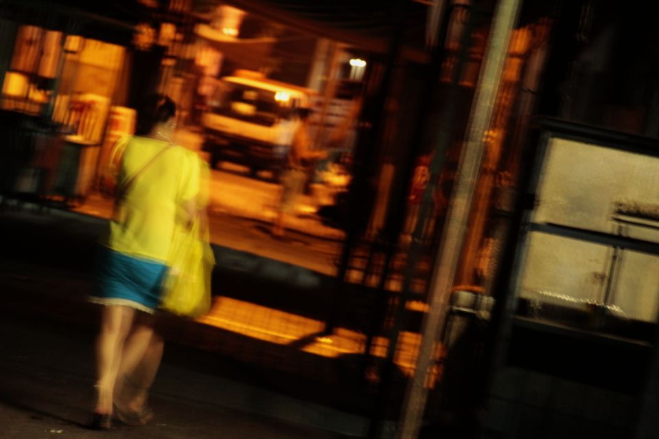 Blurry shot of a woman walking through the closed market street of China Town, Kuala Lumpur, Malaysia