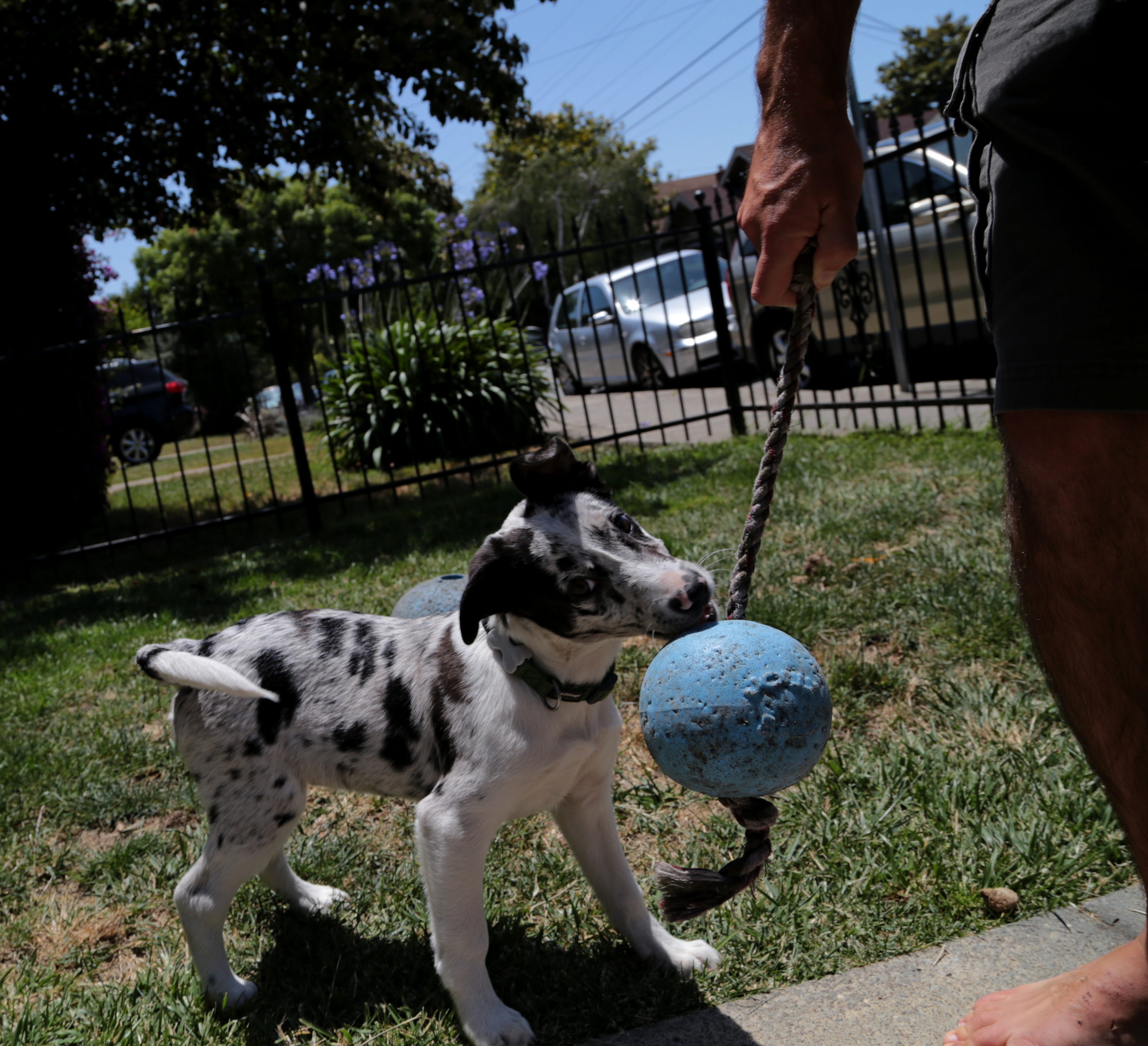 Passersby stop to chat. They pet the dogs, who love them for a moment then go back to fetch. This is a neighborhood, a dream we seek. Condensation on the bottles makes my fingertips shine, and the birds seem to sing just for the hell of it.