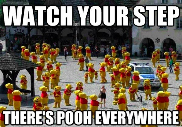 Pooh everywhereThe contractor was measuring the ceiling in my lady’s house when he noticed he’d tracked dog poo all over the kitchen floor. It was awkward, but he helped clean it up, cleaned his shoe, and we all went on with our day. He did not go deliberately step in more and lay fresh prints.