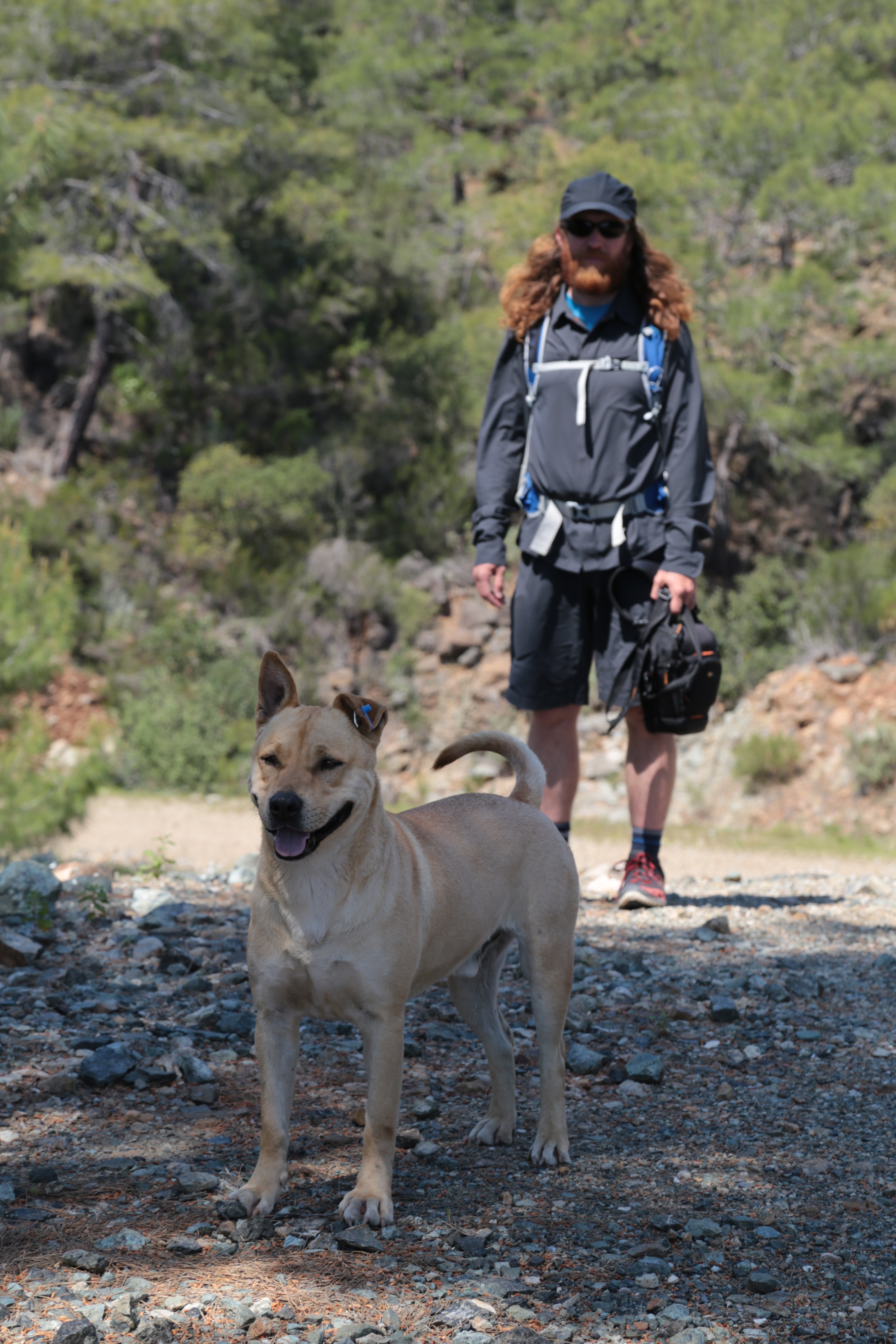 Sunlight, light wind, perfect walking temperature, brother, beautiful scenery, Turkish adventure, AND a fine canine companion? This day was turning out mighty fine.