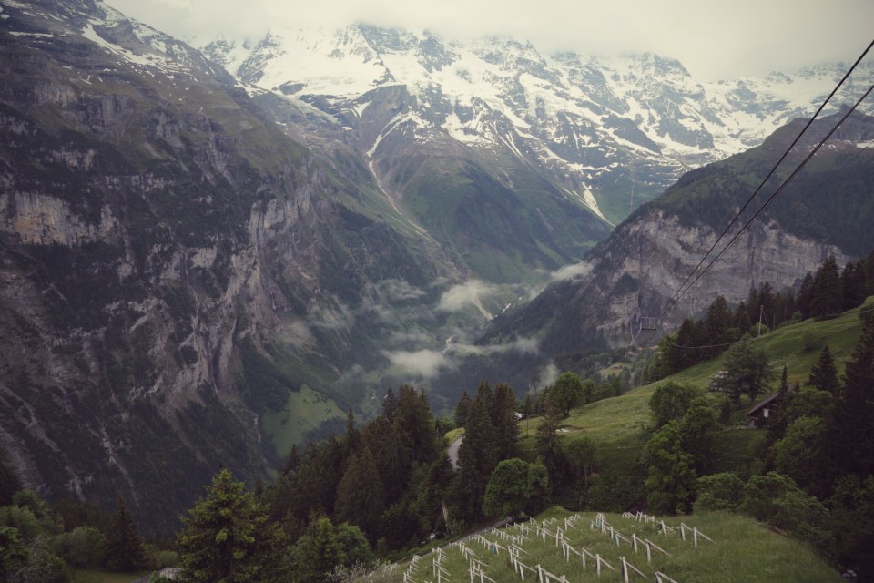 Somewhere above and between Gimmelwald, Murren, and Birg, on the way to Schilthorn