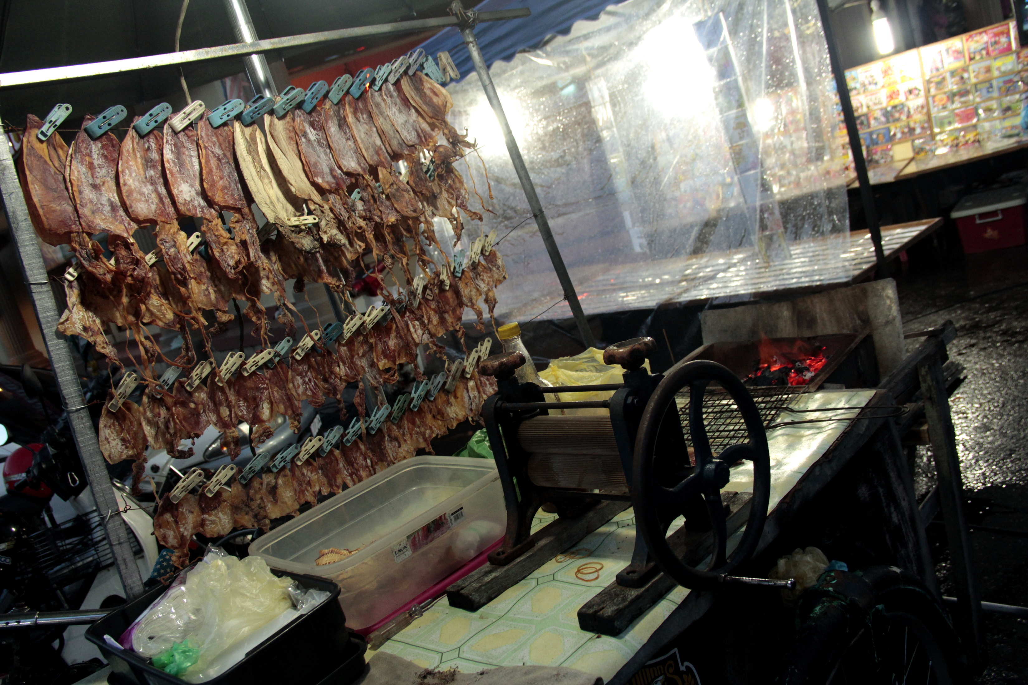 I didn’t get a photo of my Buddhist savior, but I did get his neighbor’s squid collection, later that night