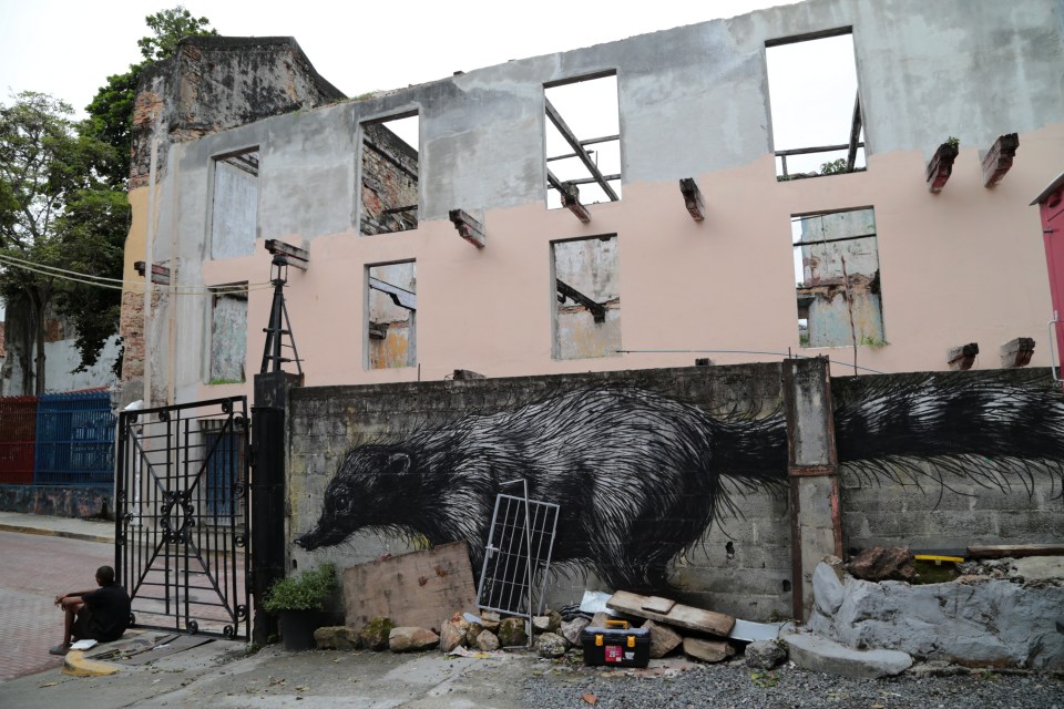 In a parking lot in Panama City, the owners said some guy showed up, painted it, and left.
