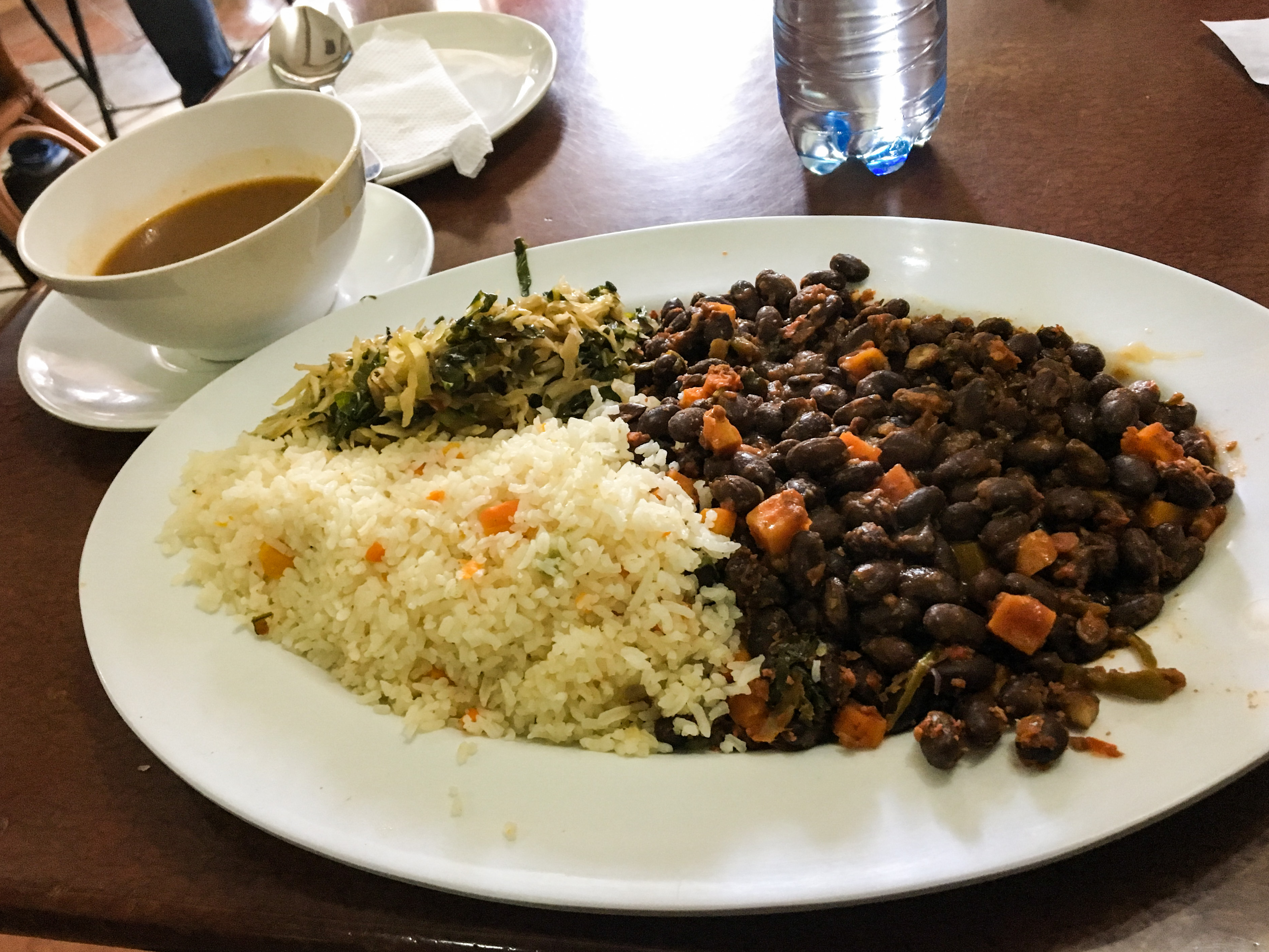 Day 1’s mystery menu item turned out to be beans, greens, and rice.