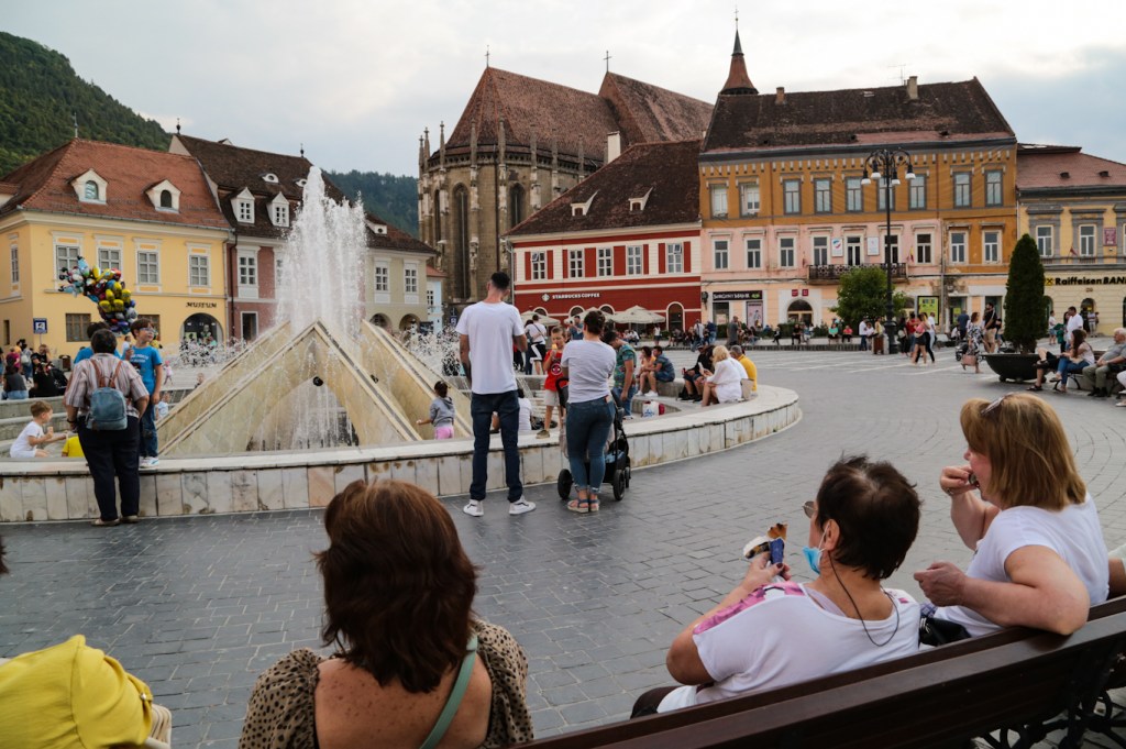 Brasov’s Piața Sfatului is famous. (The little tail on the “ț” in piața means it is the “ts” sound in pizza, so “piața” is the Romanian version of the more familiar Italian “piazza.”) Picturesque and lively, Sfatului is lined with colorful houses from the 17 & 1800’s, though the space has been hosting markets, trials, and daily life since at least the 1300s, and just off the square rise the striking gothic walls of the Saxon-built Biserica Neagra, or “Black Church.”