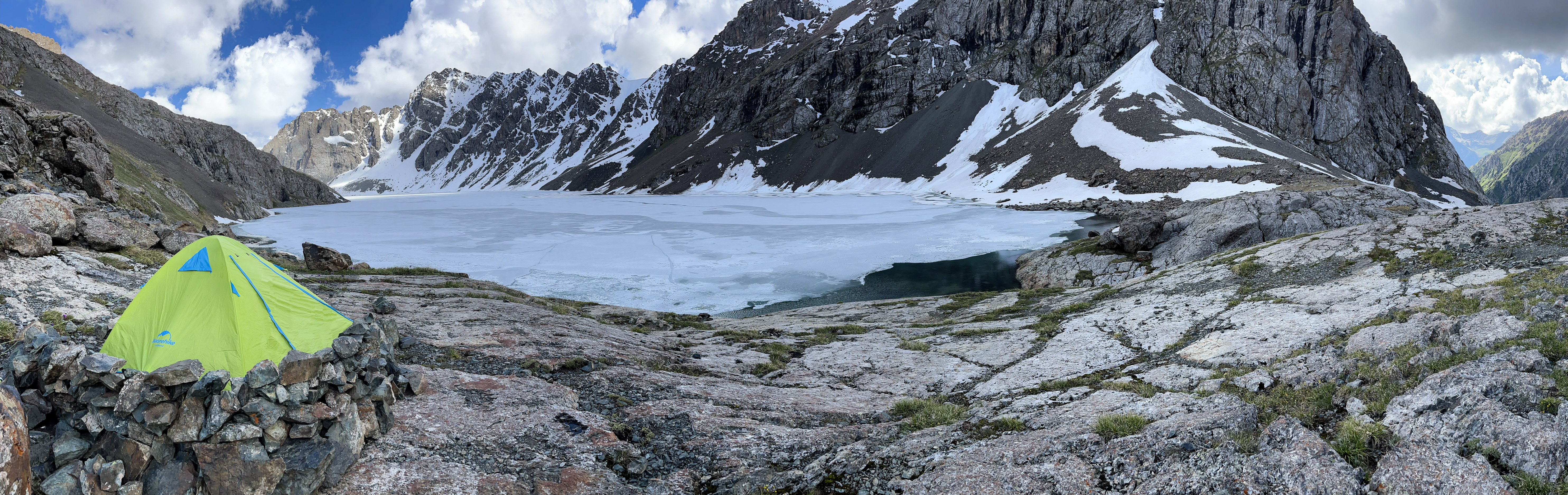 The rest of the climb was the sort of perfectly arduous effort that pushes a sweaty joy into every brain cell and a lactic acid satisfaction into every muscle. At the top, once we’d crunched past the waterfall that would obliterate a human body without even noticing, we reached Ala Kul, the Lake of Many Colors. Those colors were hibernating still under a sheet of ice, on which were etched the patterns of the wind and high altitude sunlight. I felt something inside myself breathe in deep.