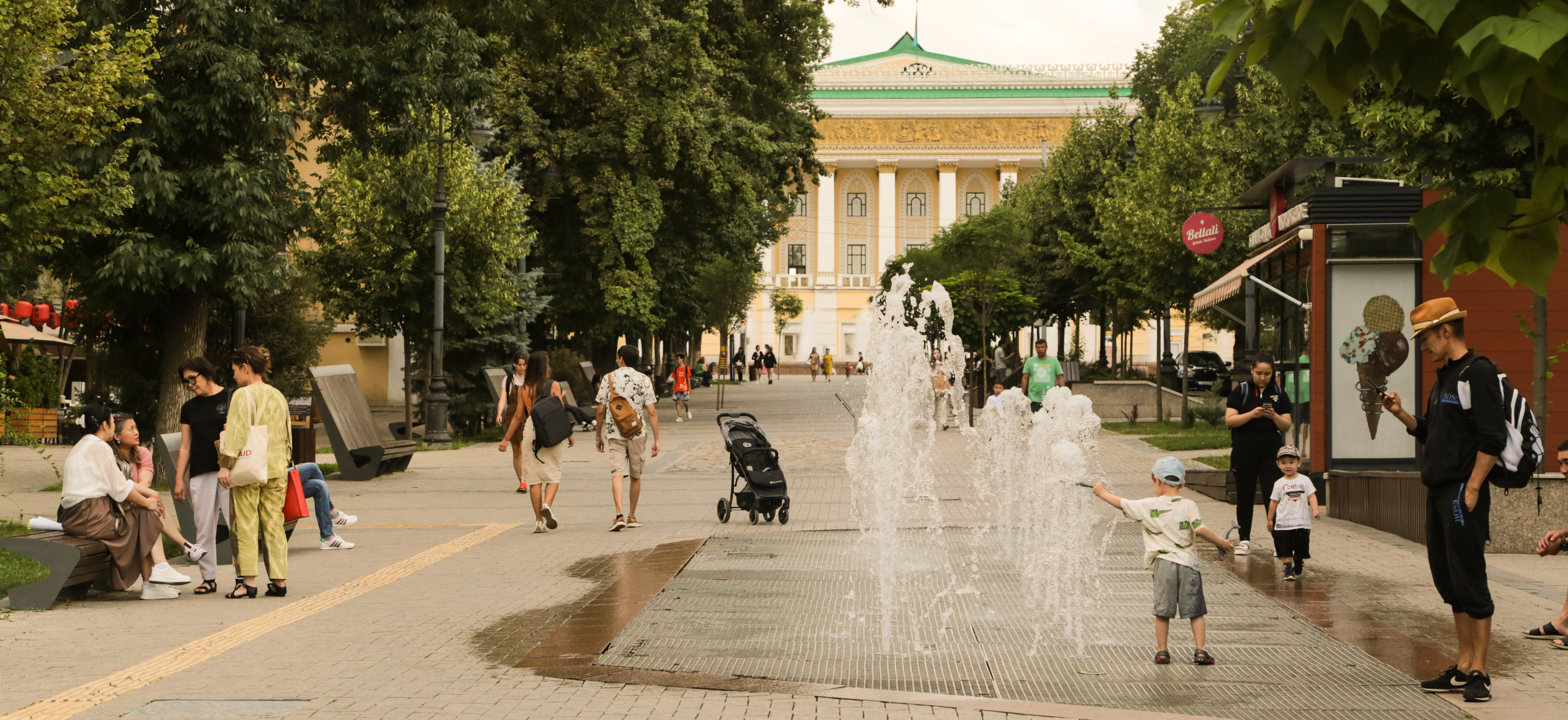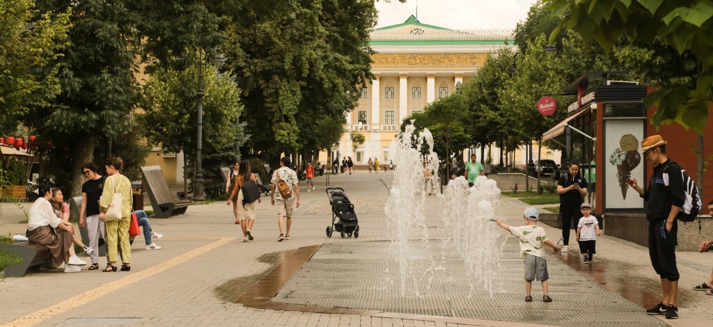 Uncontaminated by old sweat or preconceptions, I went to explore my first Kazakh city. Traffic bustled with an acceptable level of chaos, and the buildings showed thick-walled solidity with a surprising degree of ornamentation that spoke of Soviet experimentation within delineated parameters. The aggressive sun was held back by an almost continuous cover of shade trees overhead, and cafes reminiscent of Paris sipped and steeped on various corners. My mental map was quickly filled with restaurants I wanted to try. Children played barefoot in the fountains and I thought to myself “I could live here.”