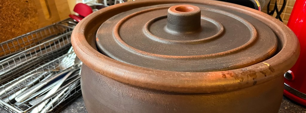 Grab a leaf, add a warm handful of filling, roll and tuck, then stack them in the pot. Ideally it’s a genuine Romanian black ceramic pot from Marginea, but anything Dutch oven-y will work. Add enough of the cabbage and tomato juices to keep everybody nice and moist (or pieces of smoked bacon, if you’re making the meat versions), with a crown layer of cabbage leaf on top, then cook. Our vegetarian rolls only needed a couple hours for the rice, the meat version normally takes about three hours, but a friend who was using the Marginea pot left that bad boy in the oven for six hours.