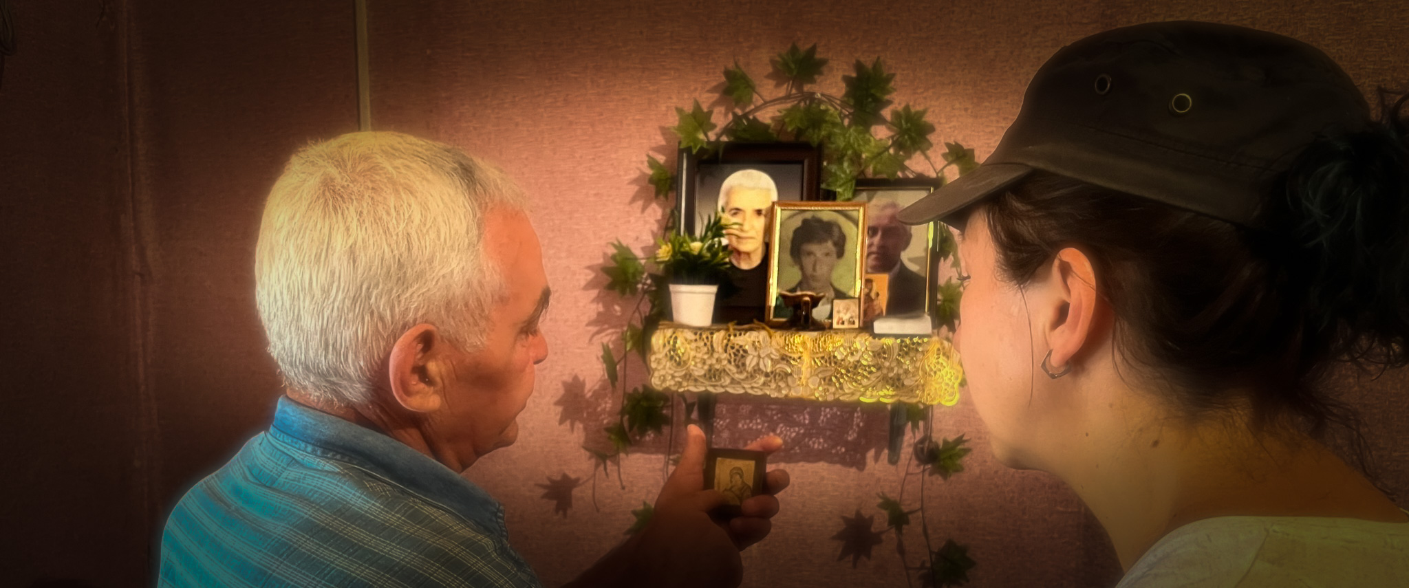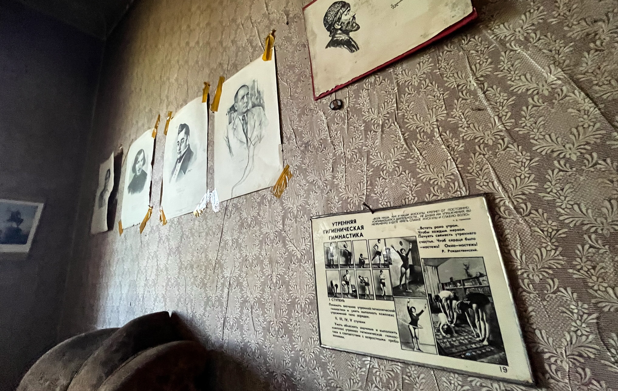 And then, after long silences and eyes that showed an unspoken need, he took us across the decaying hallway to his second room, and I understood without translation when he spoke of his family. A small shelf, more of an altar now, held six objects. Three small icons of the Virgin Mary and Christ child, and three photos. In two, the elderly man and woman were navigating the beginning of the profound transition from the stern visages of the Soviet past to the softer smiles of the present. He gestured at them, but didn’t know quite what to say. The Russian word for mother sounds something like “might.”