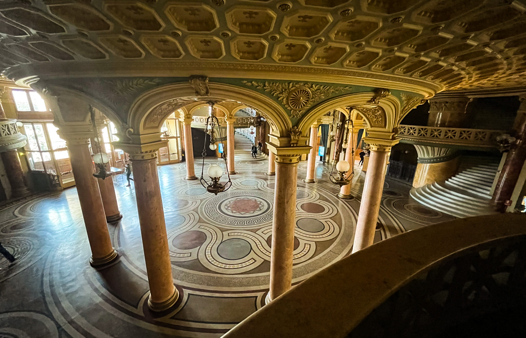 Luckily, just as we can travel back through the murk of the 20th century to that shining moment before the war, we can then return to the sunlight of this moment, still shining despite the clouds. When I visited last month, this spirit was strong not just in the walls but in the air itself, where the music of a few practicing musicians rose up past the mural that celebrates Romanian history to dance under the dome of this special moment. No time travel required.