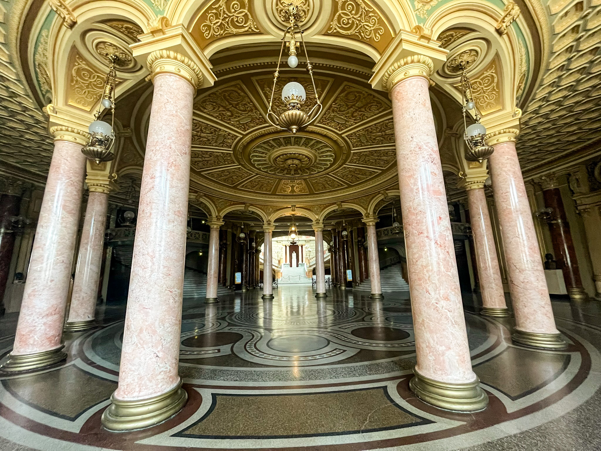 This blend of western and eastern is a good start to understanding Romania. Add to it via the central circle of columns that fill this concert hall with echoes of Ancient Greek theaters, that Hellenic influence is here too, particularly in the Orthodox churches for hundreds of miles around. Look at the golden ornaments and find the Baroque heights of the Austrian Empire, but let me draw your attention to the dragons that circle the main hall’s summit. Those are fundamentally and inextricably Romanian, though you’ll have to wait for Transylvania to hear why.