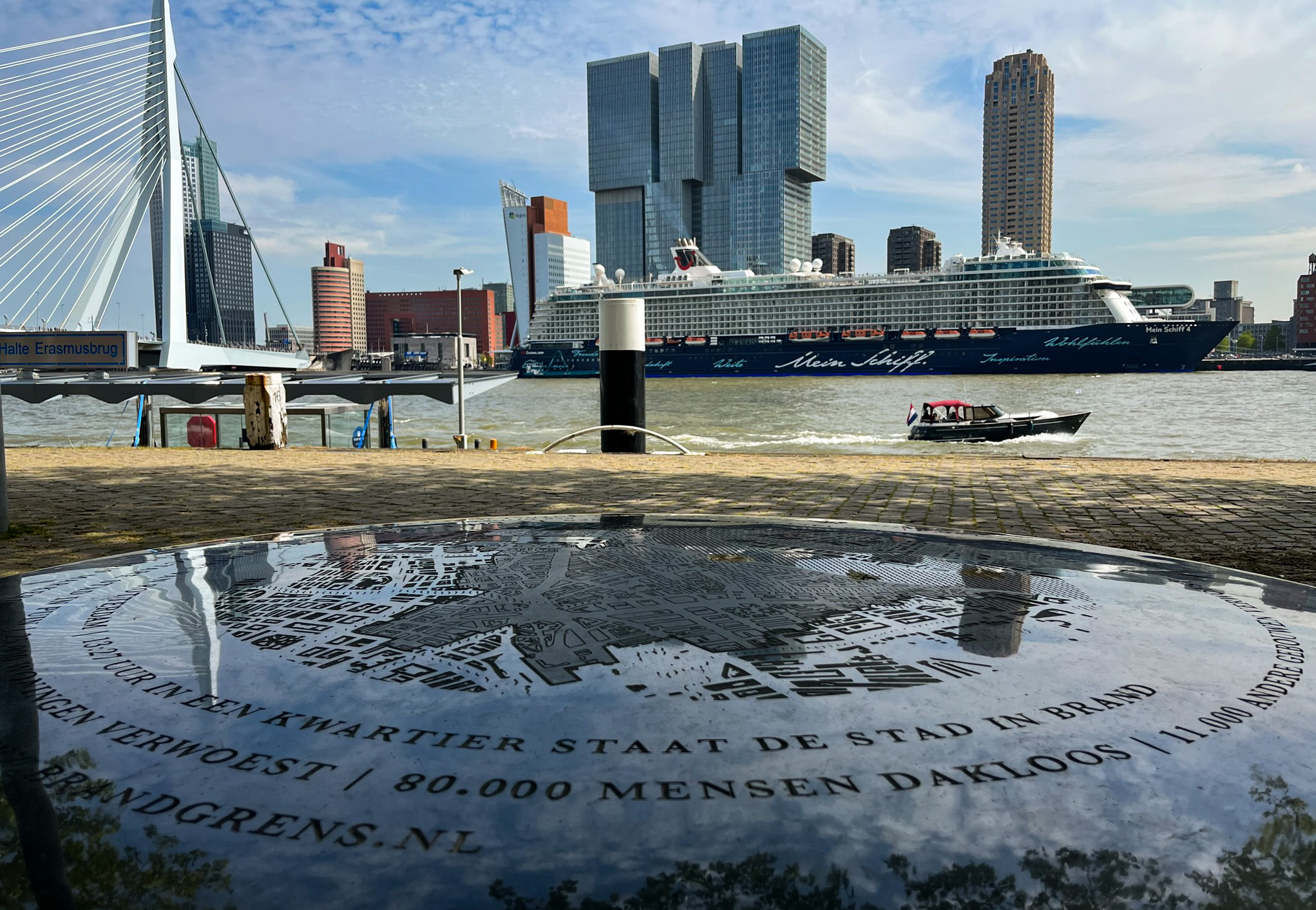 This memorial to the bombing of Rotterdam in 1940 mentions the 80,000 people left homeless, and is surrounded by the beautiful city that was built by and for everyone